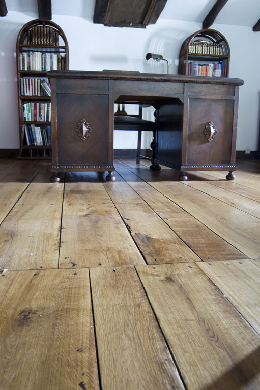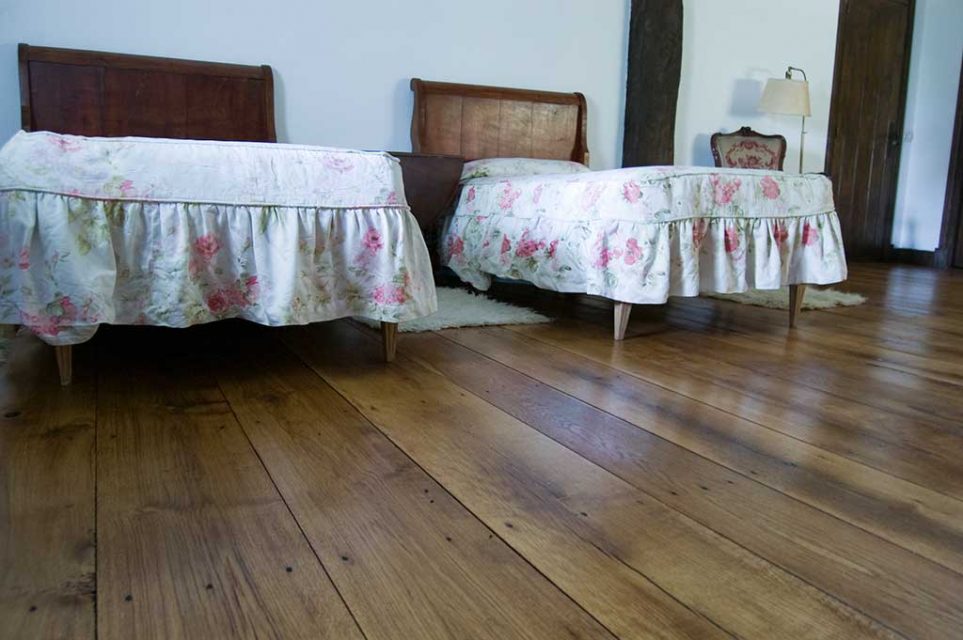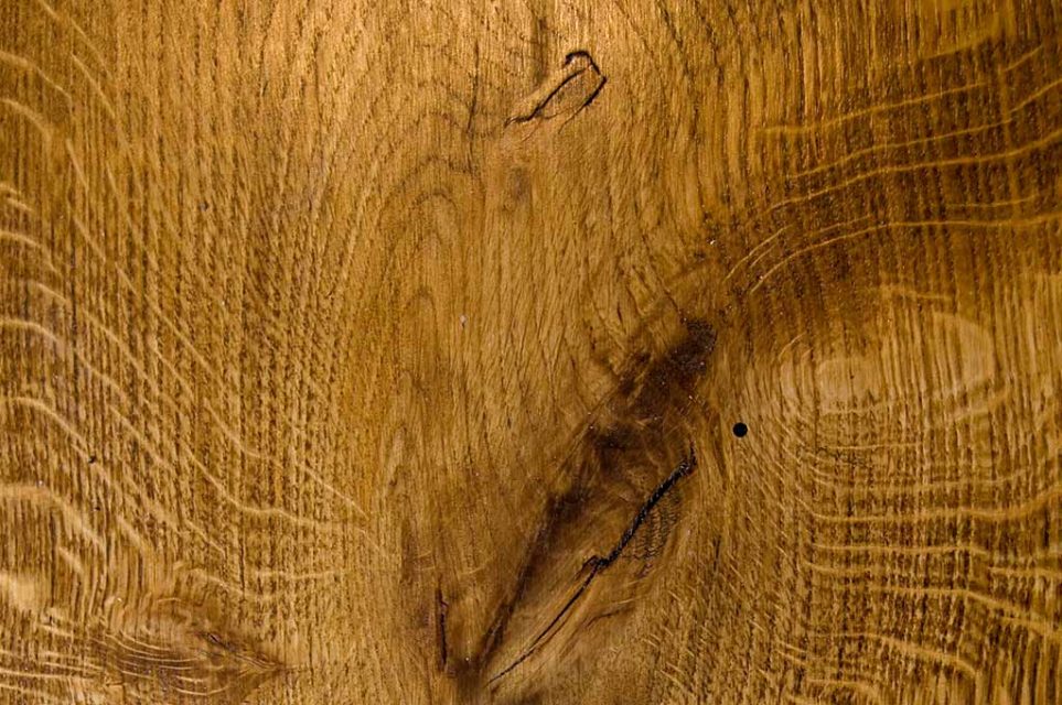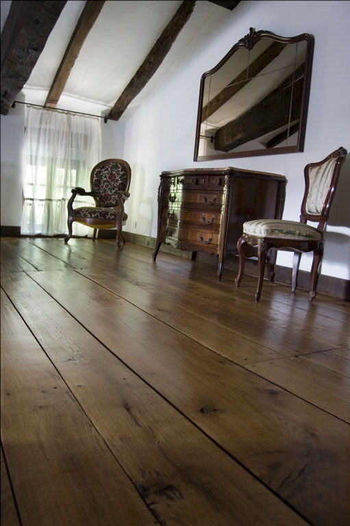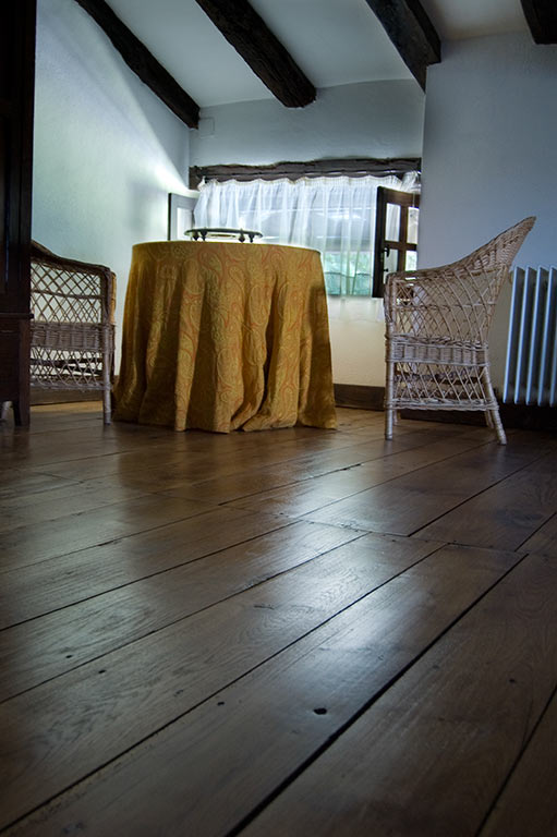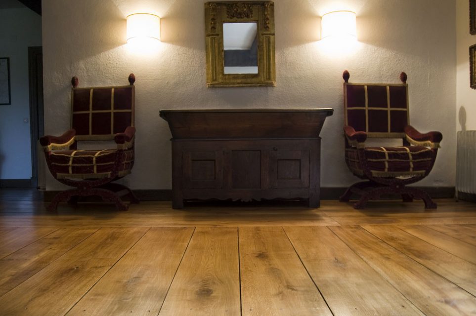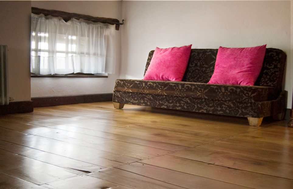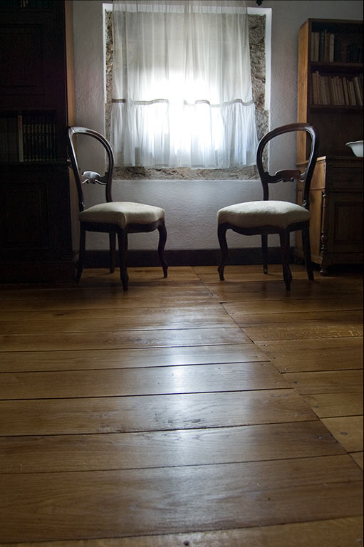 Nuestra actuación sobre el suelo de tarima de roble, consistió en un acuchillado fino de la superficie. Después aplicamos un aceite natural hasta saturación del poro. El acabado es a la cera, también natural, de carnauba y abeja. Para finalizar, mediante un pulido matizamos un acabado con un brillo sedoso. Este tratamiento tiene propiedades antiestáticas y antideslizantes. El poro de la madera queda abierto. Esto se traduce en una presencia de la madera en toda su textura, color, tacto y esencia.